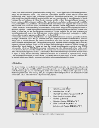 Energy consumption in the residential sector in Morocco has been on the rise in recent years due to the country’s growing population and economic development. A significant portion of this energy consumption is attributed to HVAC (Heating, Ventilation, and Air Conditioning) systems. To address this issue, there is a need for greater awareness and adoption of passive cooling and heating strategies, cost-effective insulation materials as well as energy efficient HVAC systems and practices in Moroccan households. In this regard, this study deals with the thermal assessment of one of the ABC21 bioclimatic buildings. In particular, the Dar Nassim case study which is located in Marrakech, Morocco. Since the building is west-faced, an exterior combination of wood and extruded polystyrene layers was added to the façade. Similarly, an interior combination of wood and fiberglass has been applied to the walls within the living room (Salon). This new configuration was assessed by the mean of several dynamic simulations using the OpenStudio software. In order to validate the model, the building has been monitored for a 1-year period, using smart temperature and humidity sensors. As results, the façade inside temperature has been attenuated by an average of 1- 4 °C respectively to the cold and hot season. Also, the building’s annual thermal load decreases from 26.6 to 25.58 kWh/m².y. Additionally, the natural ventilation was taken into consideration in the modelling phase. As result, the simulations show significant indoor temperature drops especially in the summer. In conclusion, for the 1- year period where the building was monitored and assessed, Dar Nassim was able to maintain an adequate indoor temperature by the mean of a judicious combination of insulation materials. In addition, the natural ventilation has been addressed as a passive cooling strategy that occupants could adopt in the hot season.